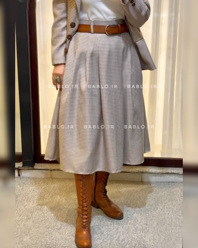 ◾️سایز خانم مدل ۳۸ است و سایز یک دامن را پوشیده